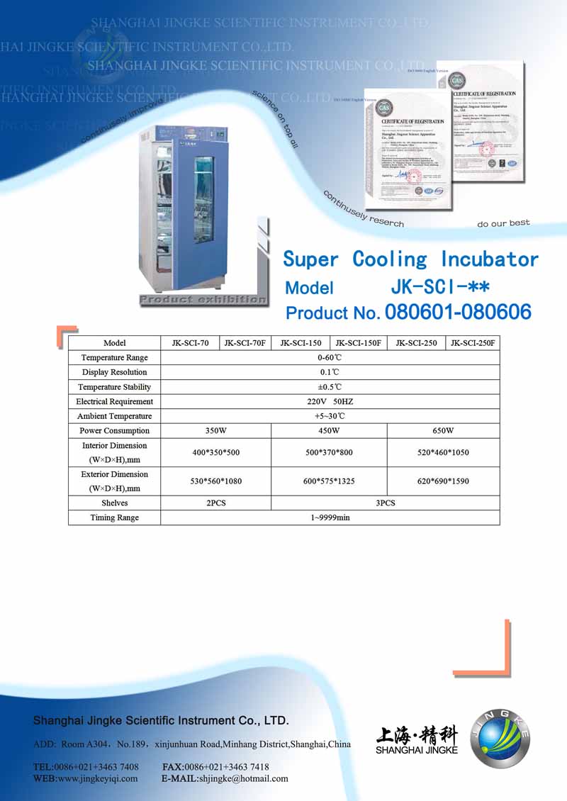 JK-SCI-350L Super Cooling Incubator JK-SCI-250L Super Cooling Incubator JK-SCI-150L Super Cooling Incubator JK-SCI-80L Super Cooling Incubator |