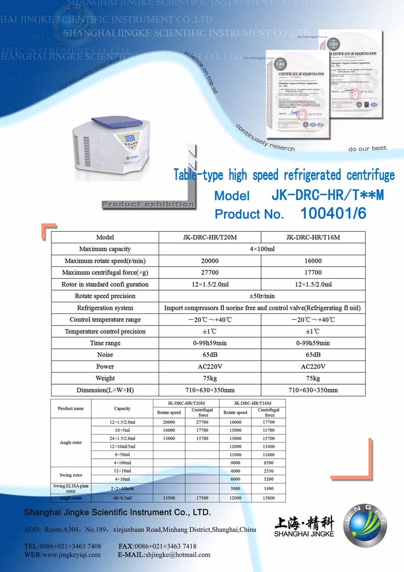 Product name: | JK-DRC-HR/T16M Table-type high speed refrigerated centrifuge |
