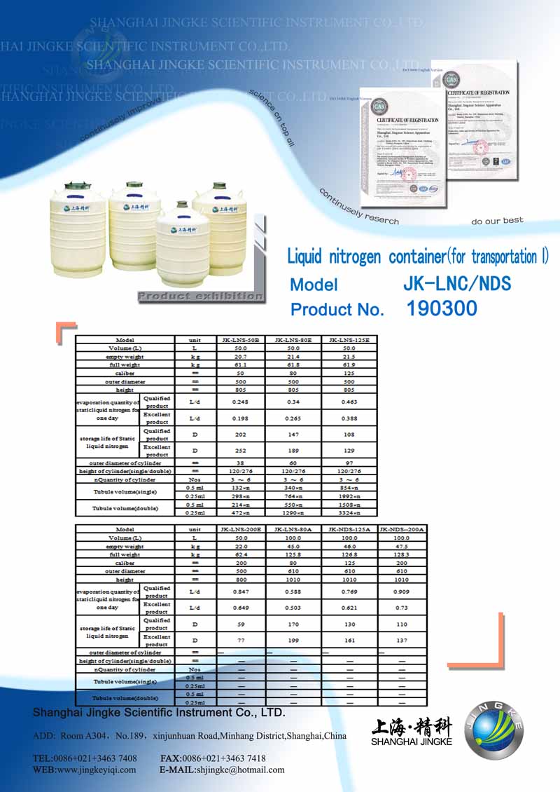 JK-LNC400 Liquid nitrogen container(large caliber) JK-NDS-80 Liquid nitrogen container(for air transportation) JK-NDS-3 Liquid nitrogen container(for air transportation) JK-LNC-125C Liquid nitrogen container(for storage II)(with canister ) |