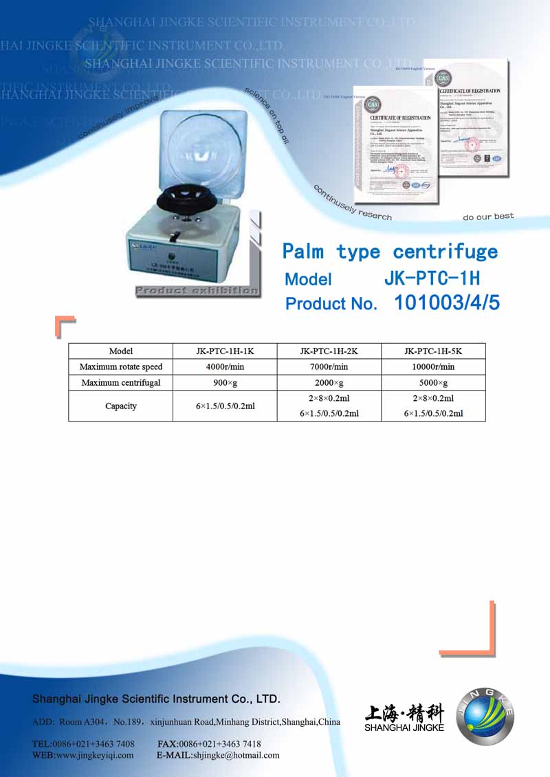 Product name: | JK-PTC-1H-1K Palm type centrifuge |