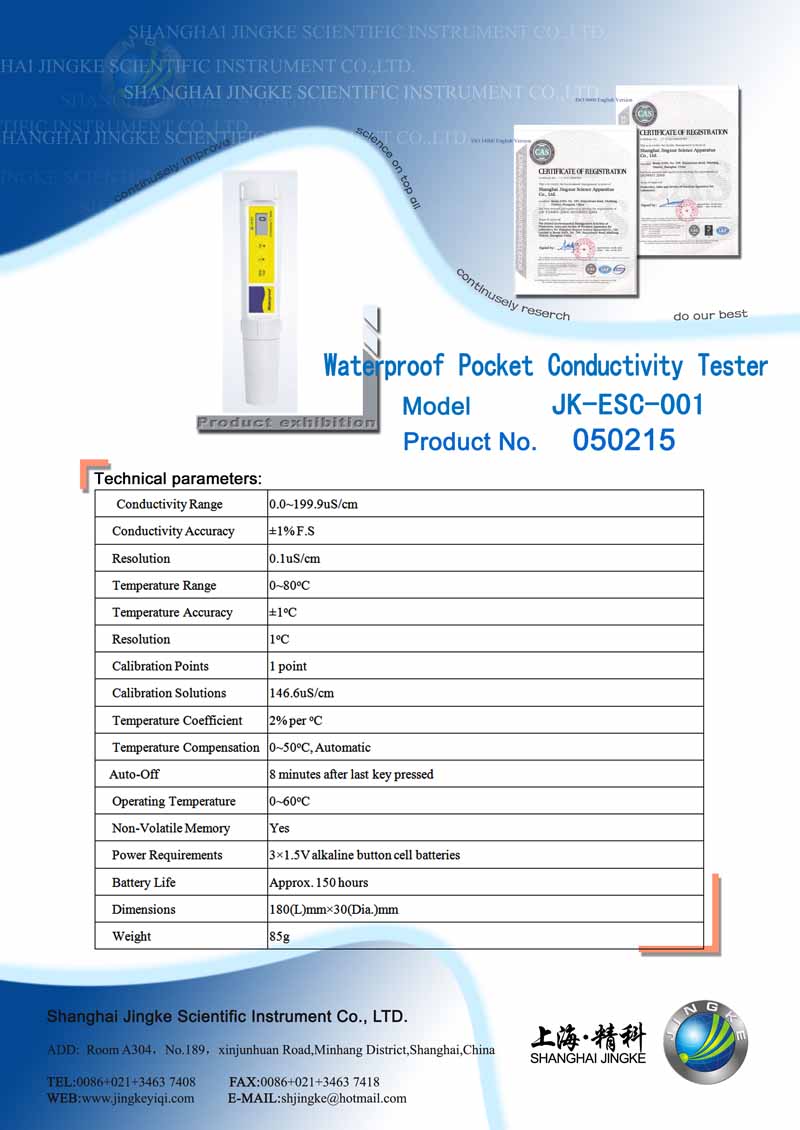 Product name: | JK-ESC-001 WATERPROOF POCKET CONDUCTIVITY TESTER |