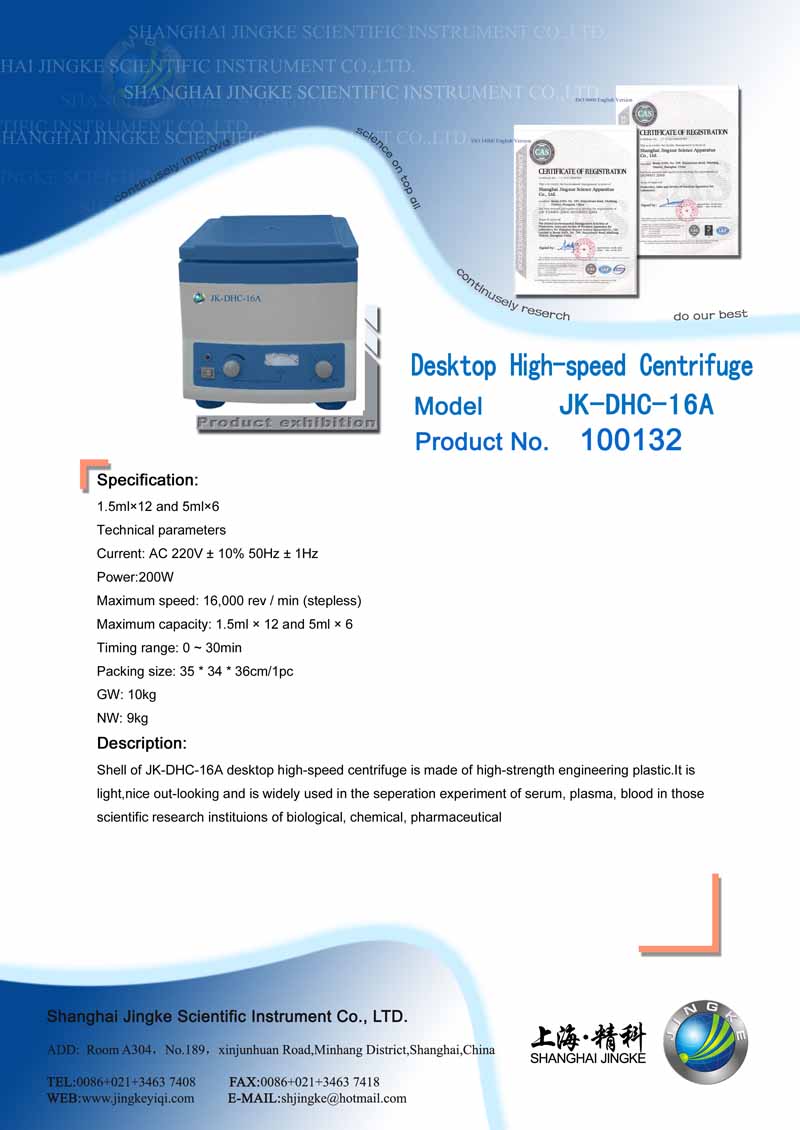 Product name: | JK-DHC-16A Desktop High-speed Centrifuge |