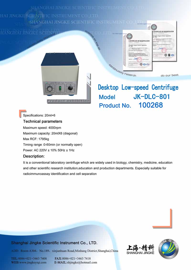 Product name: | JK-DLC-801 Desktop Low-speed centrifuge |