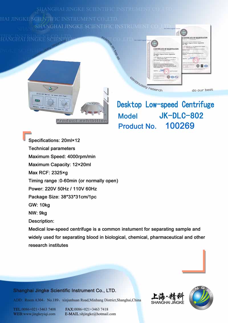 Product name: | JK-DLC-802 Desktop Low-speed centrifuge |