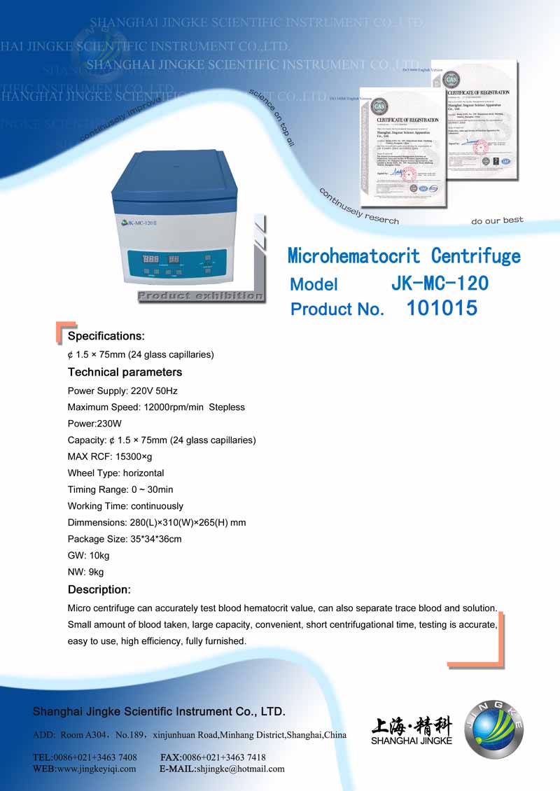Product name: | JK-MC-120 Microhematocrit Centrifuge |