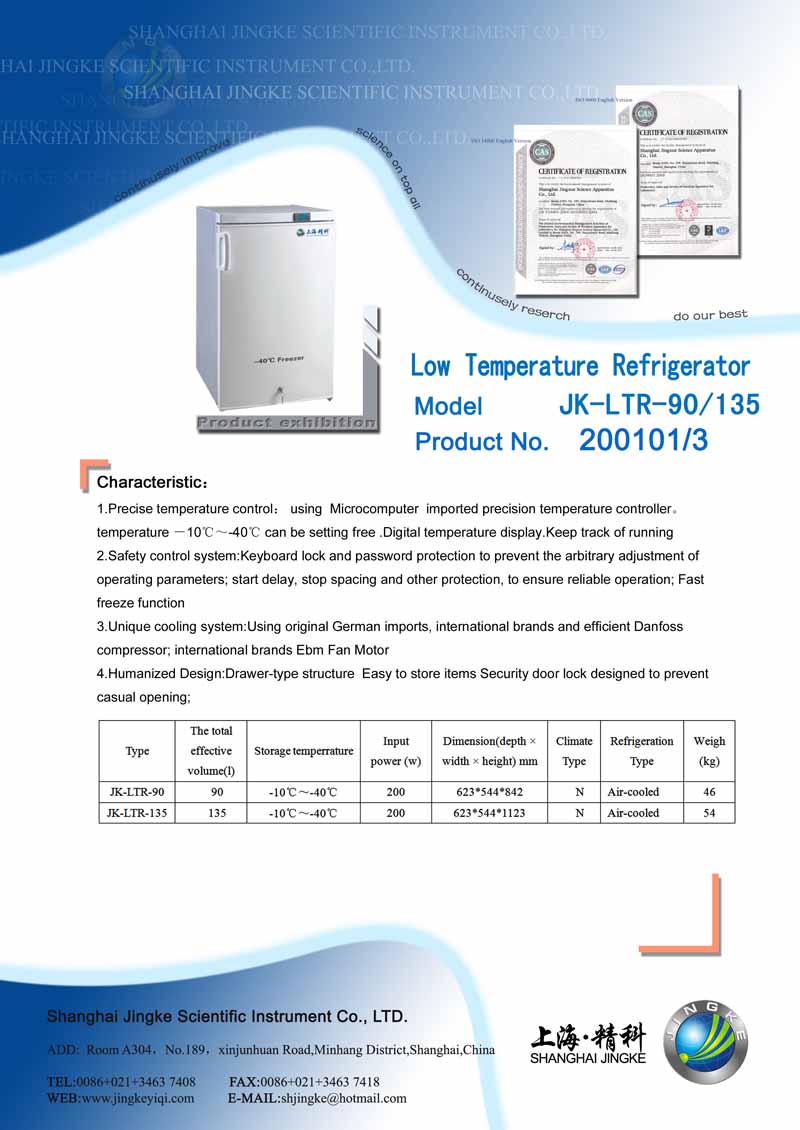 -40℃ Ultra-low temperature freezer storage boxes Characteristic: 1.Precise temperature control: using Microcomputer imported precision temperature controller。temperature -10℃~-40℃ can be setting free .Digital temperature display.Keep track of running 2.Safety control system:Keyboard lock and password protection to prevent the arbitrary adjustment of operating parameters; start delay, stop spacing and other protection, to ensure reliable operation; Fast freeze function 3.Unique cooling system:Using original German imports, international brands and efficient Danfoss compressor; international brands Ebm Fan Motor 4.Humanized Design:Drawer-type structure Easy to store items Security door lock designed to prevent casual opening;