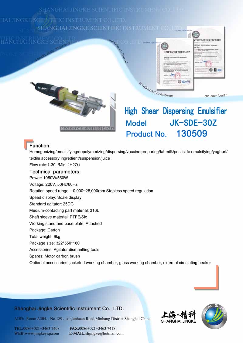 JK-SDE-30Z High Shear Dispersing Emulsifier